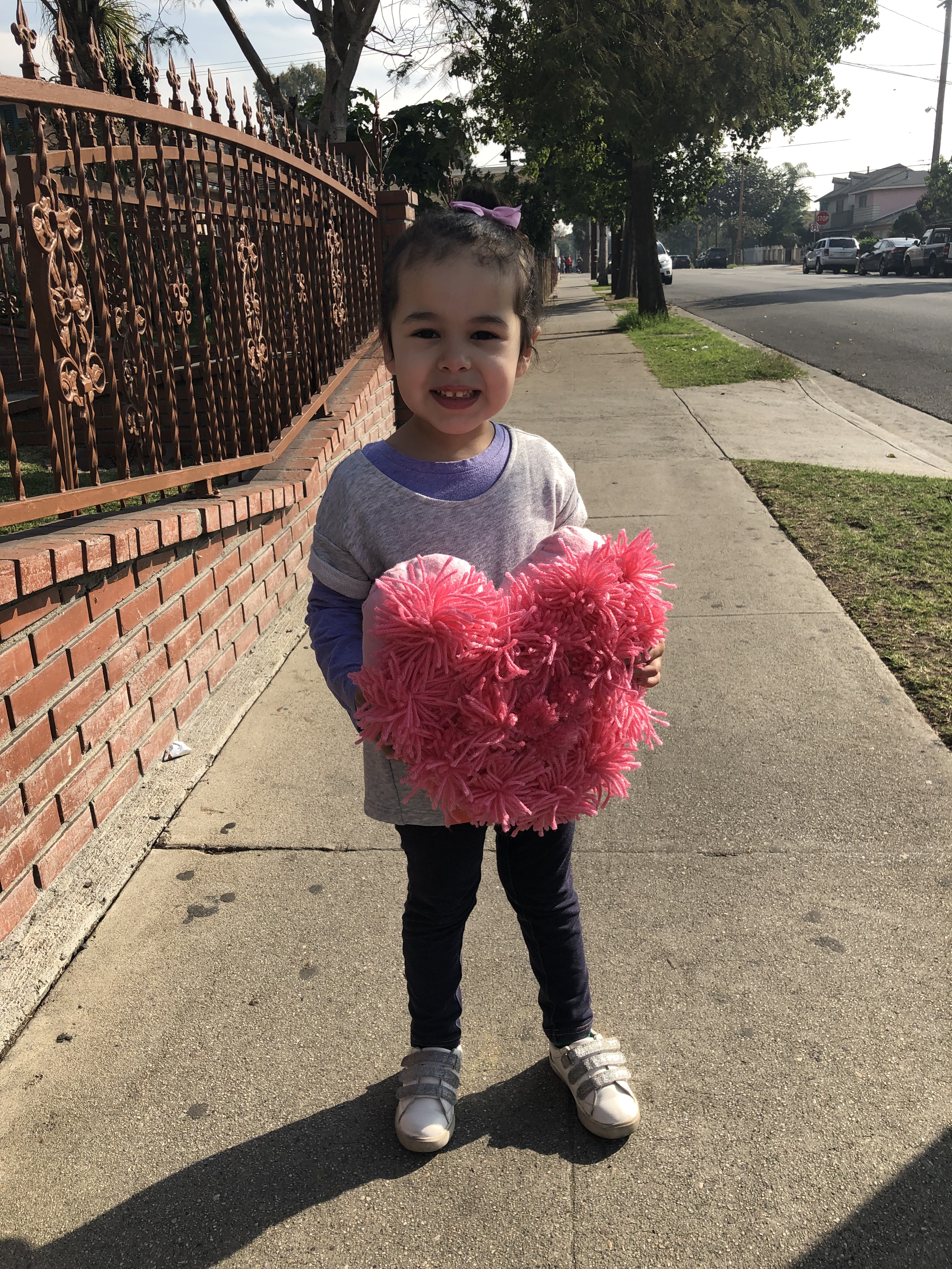 My daughter’s preschool class asked us parents to make a reading pillow. It could be anything. I wanted to make a rainbow pillow but my sewing machine currently isn’t working. I didn’t want to overwhelm myself with something difficult since I’ll be sewing it by hand. We decided on a heart pillow. I could have bought one since Valentines Day is next month and there are heart pillows everywhere but I wanted to make one for her.