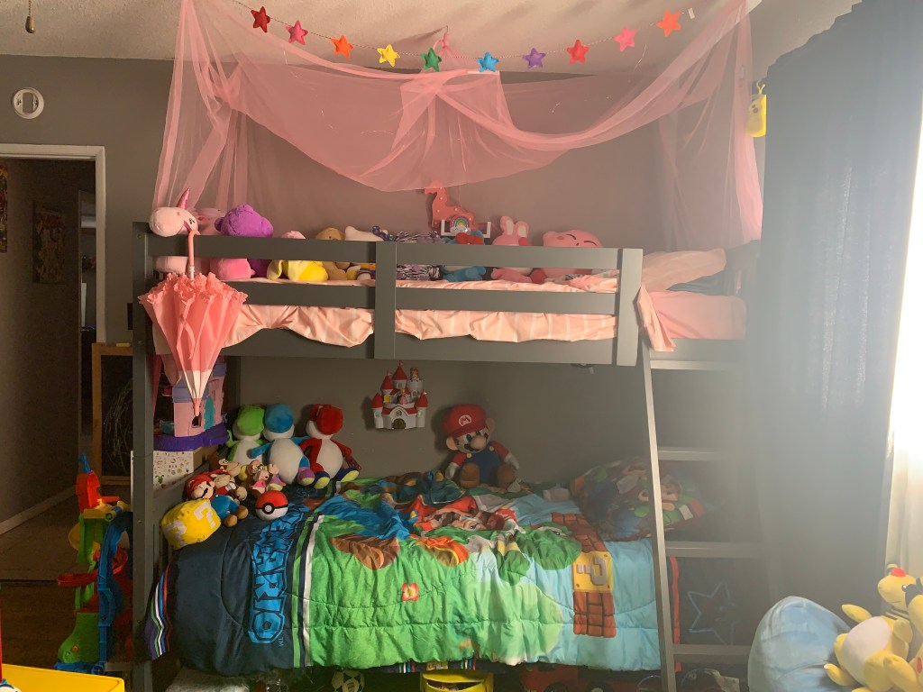 It’s been a year since Zelda got her toddler bed. I thought she would stick around with it for another year but a few months ago she started asking for a bunk bed. I thought she was kidding at first but she kept insisting. She wanted a bunk bed for her and Link and she wanted the top bed. I thought it was a great idea but I kept delaying it because I was scared for 2 reasons: Link and Zelda falling from the top bunk and Link climbing up in general since he’s a daredevil. After talking to my husband, we decided to get a bunk bed.