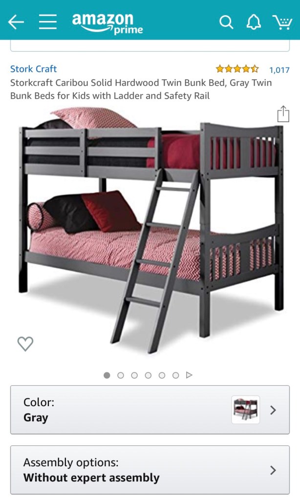 We started looking around online and at our local furniture stores. In the end, we bought the bunk bed from Amazon. Free shipping and it arrived a week earlier! The only issue I had: I haven’t bought the mattresses since I wasn’t expecting the bunk bed to arrive so soon. So after building the bunk bed (with the help of my husband), we ordered mattresses and comforters from Amazon again 😅