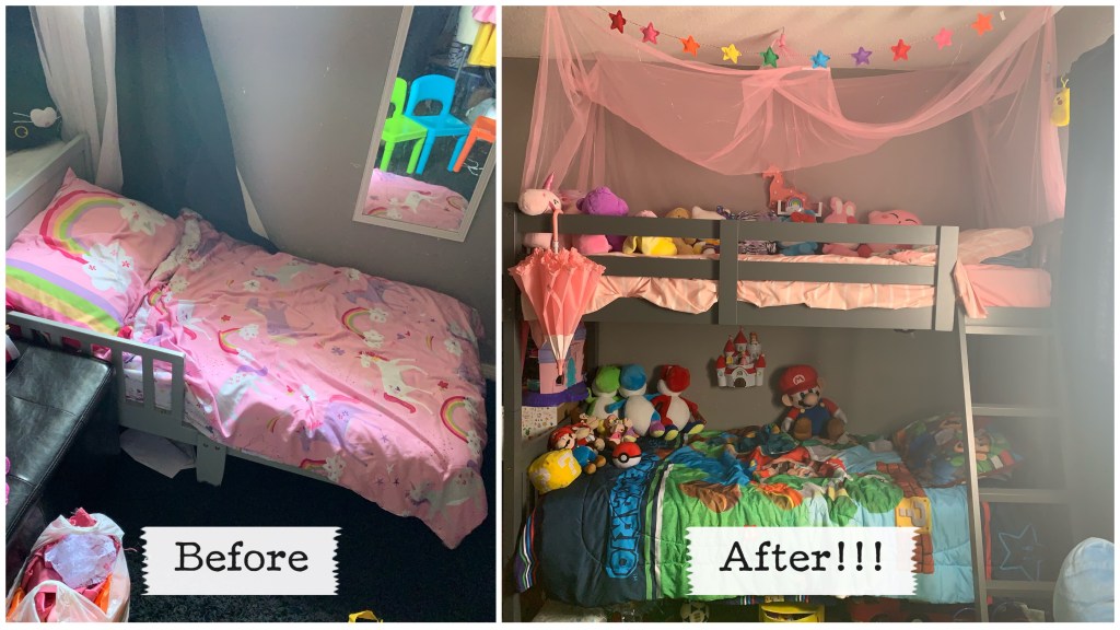 The room was such a mess for a few days since I was moving everything around, literally EVERYTHING! My anxiety levels were high. Overall, I love how everything turned out. Kids are happy and I’m happy.