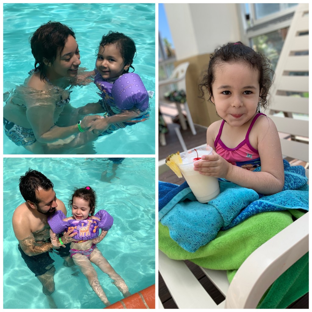 We checked in and got settled in; stocked up the fridge and got comfy. I loved the villa and it’s a good thing because it was our home for the next 3 days. The villa had 2 bathrooms; one upstairs, the other downstairs. A king size bed upstairs and a big view of the ocean. We mostly stayed on the first floor though because I didn’t want the kids climbing the spiral stairs. There were 3 sofas on the first floor and we made a bed from the cushions on the floor and got the sheets from the bed. Very comfy. My mom got her own room but they could have stayed with us have I known about the additional person fee. We never slept in the bed and the villa was so spacious it could definitely accommodate 3 more people. Next time.