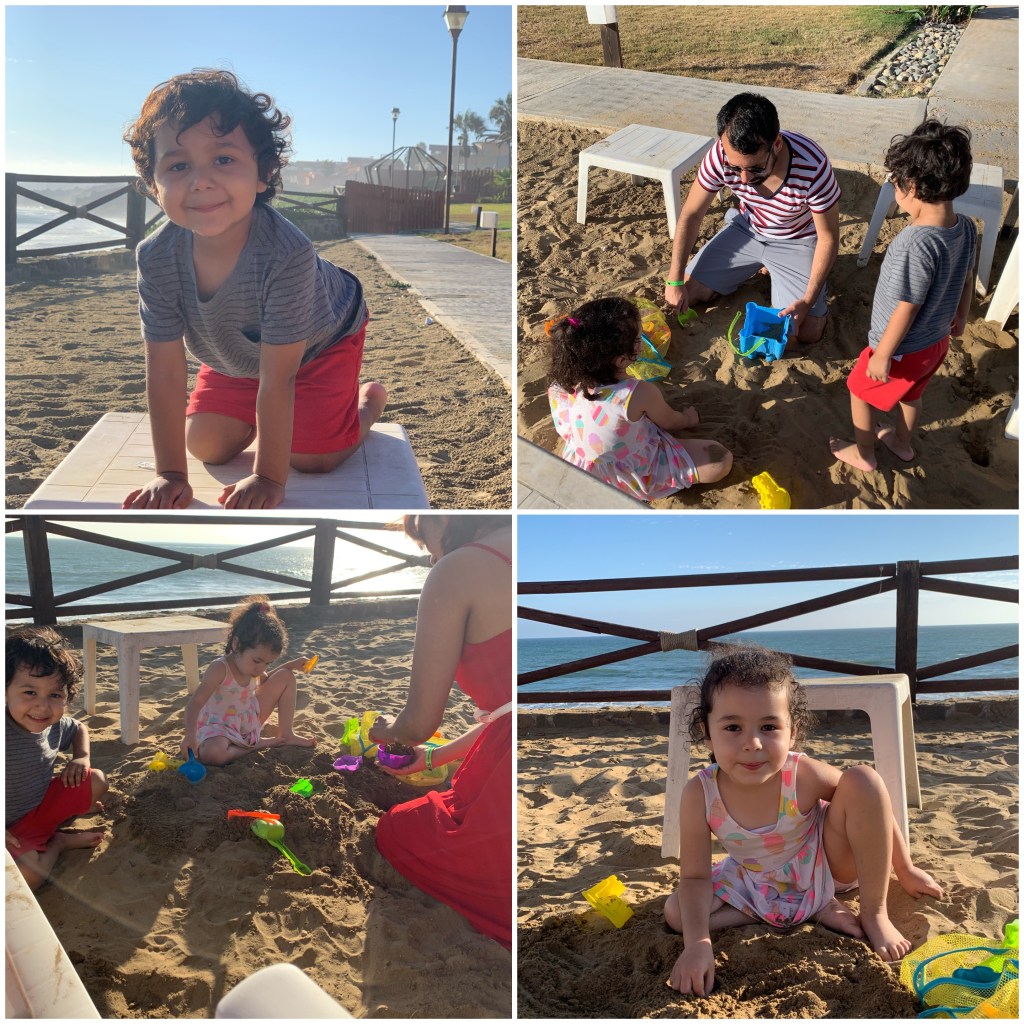 The villa also had a screen door towards the garden/ocean front. We went outside to check out the view and we noticed a great spot with sand and beach chairs. Luckily I brought the beach toys and we started making sand castles. It was windy but not cold. Eventually we went back inside and ate. We weren’t sleepy yet so we decided to explore the resort. Along the way, we played Pokémon Go. After checking everything out, we went back to our place and called it a day.