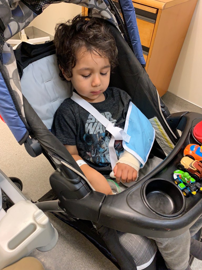 Before our trip to Puerto Nuevo, we got quite a scare with Link. Boys are more hectic than girls and Link is no exception. On a Tuesday night, the whole family was in the living room watching a movie. Link and Zelda were playing and they started jumping on the couches. Angelino and I started telling the kids to stop jumping because they can fall and hurt themselves. Zelda stopped and settled down but Link kept jumping. Sure enough, he lost his balance and fell back from the armrest to the tile floor. I saw he went head first so I was worried he got a bad head injury. I didn’t see that he landed on his left arm. When I heard him cry, I knew he was in pain. He doesn’t cry like that. As a parent, you can kinda distinguish different types of cries: tired, annoyed, angry, or in this case, pain. When I had him on my lap, I realized he was holding his left hand. I applied a little bit of pressure and he would pull it away. There was no way I was going to wait till morning so I went to the hospital while my husband stayed with Zelda back home. They took 2 x-rays of his left arm because the radiologist was scared of hurting Link any further since he was crying while we held him down. After waiting for the doctor, 2 nurses came and said that it’s fractured. They start banding this arm up and put a sling to prevent him from moving it. Doctor came in shortly and told me to take him to his pediatrician. So in the morning, Link still can’t move his arm, we went to his doctor and after telling them what happened, they said it’s best to go straight to the hospital. So we went to another hospital and they did multiple x-rays. The strangest thing was after the x-rays were taken, he started using his left arm and lifting it up. The doctor came and said it wasn’t fractured at all. The x-rays showed nothing. He then explained to me what Nursemaid’s Elbow is. It’s a common injury among children when you pull on the child’s lower arm or hand and the elbow dislocates. In this case, when he fell back, he landed on his left arm, dislocating it. The second time x-rays were taken, his elbow was accidentally put back into place by all the arm movements made by the radiologist. Link was okay and we were able to go home. His hand was swollen though and by Saturday, I took him again to the hospital. After 3 hours and more x-rays taken, Link is fine. He had a chubby purple swollen hand but at least nothing was broken and a few days later, it was back to normal. This little kid has given me so many scares and it’s only beginning.