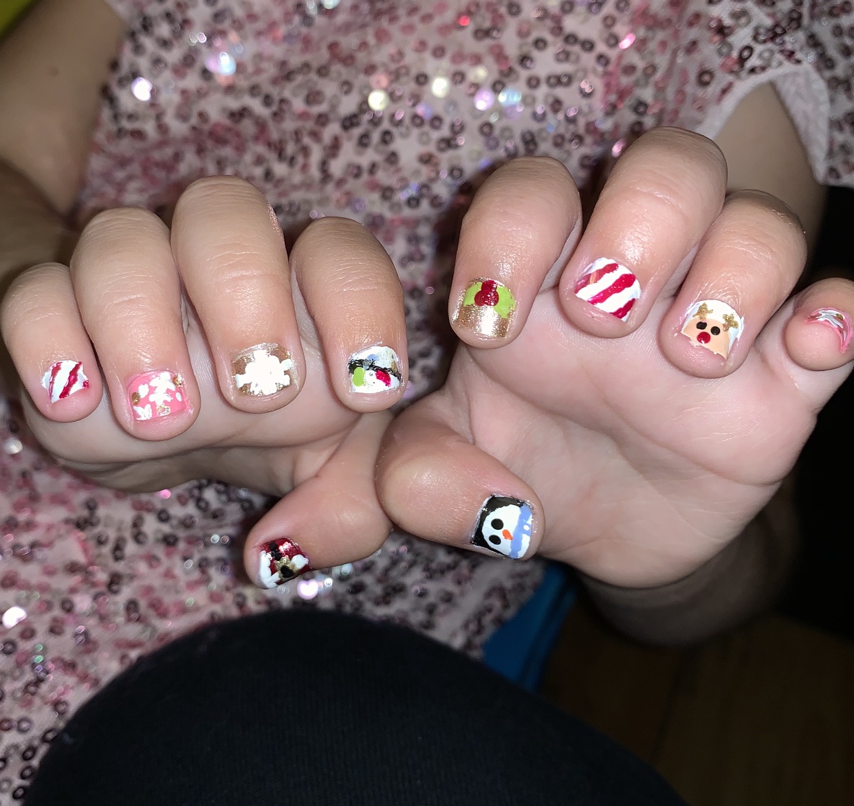 I think it’s ironic that, as a family, we randomly do fun activities on a normal day (bowling, karaoke, arcades, and other stuff) and when it’s a special occasion, we have no clue what to do. But anyway, Zelda put on her sparkly pink dress and shoes and was having fun at home. I did her nails with cute Christmas designs.