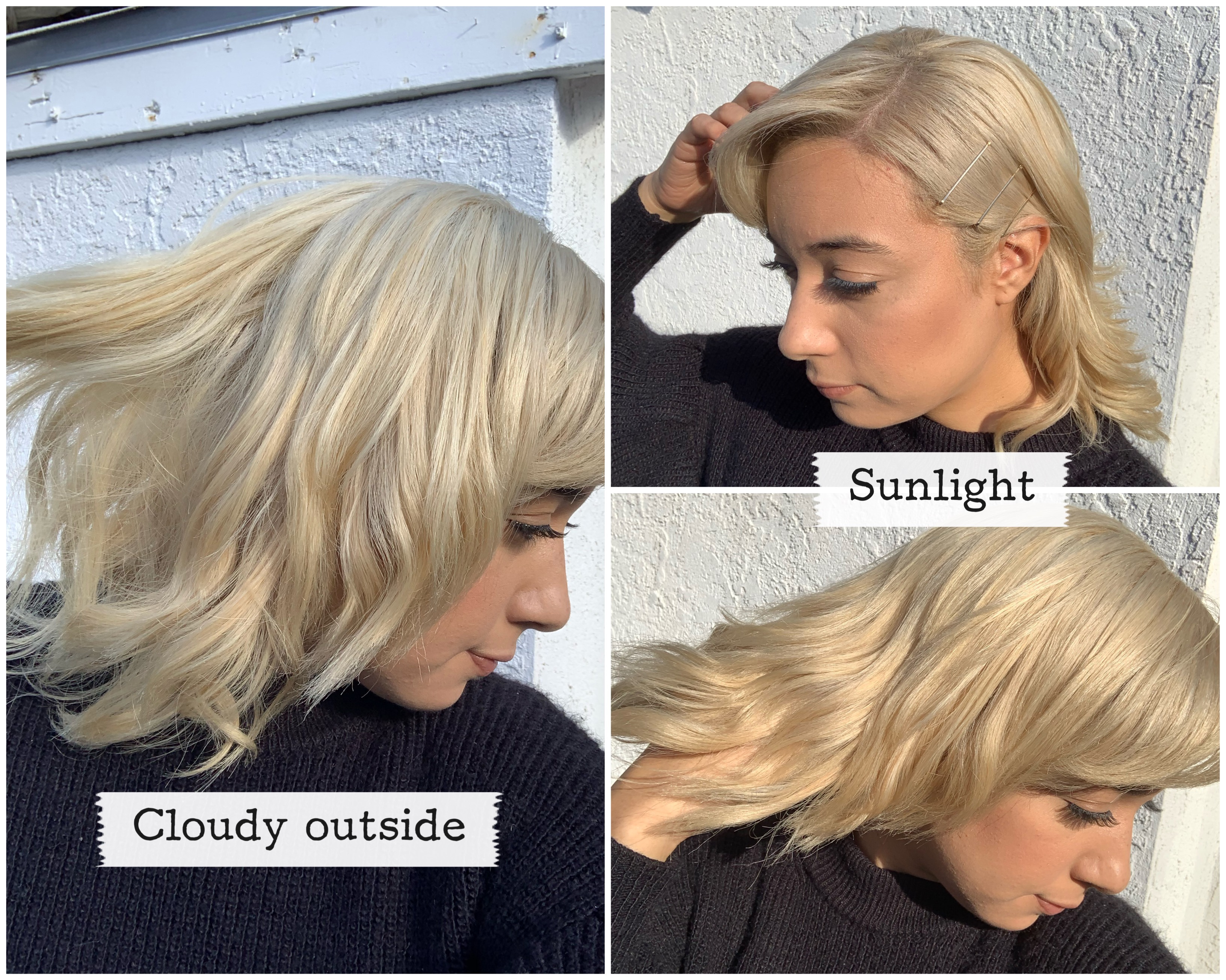 The next day I styled it and took pictures indoors and outdoors. Overall I like it. It’s between ash blonde and gold warm blonde….a beige lol my roots do appear like a darker beige but I don’t mind it. I’m guessing probably I left the toner longer than I should of or maybe I didn’t lighten my roots enough. Whatever! I like the end results.