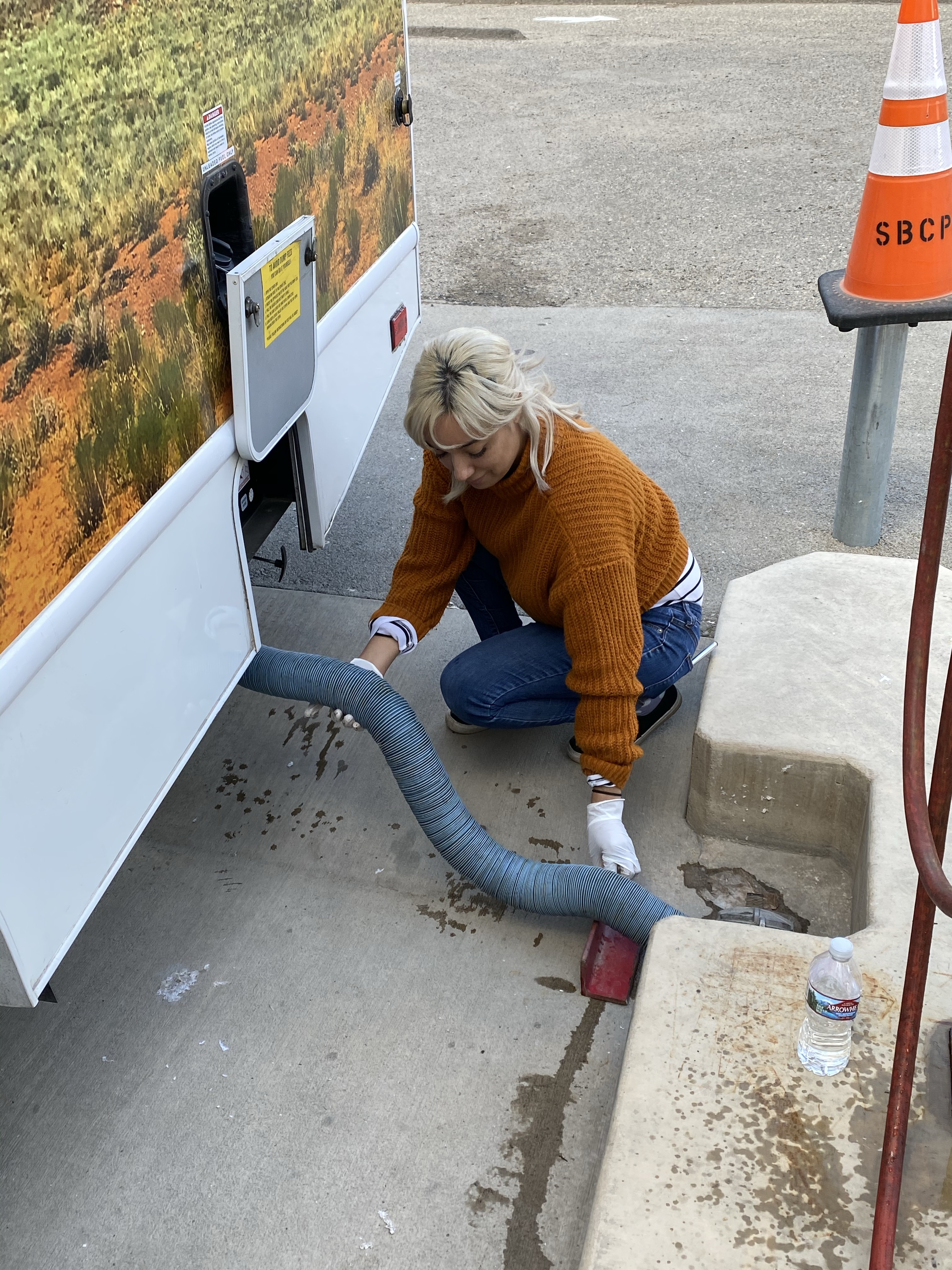 Sunday- Woke up first, turned on the generator to warm up the water for a quick shower. Made breakfast while my husband took Zelda for a spin in the bicycle. After eating, we cleaned up and were ready to go. Before we left Lake Cachuma, we used their dump station and emptied the black and gray water. I honestly was a little nervous doing this but it was fairly simple.