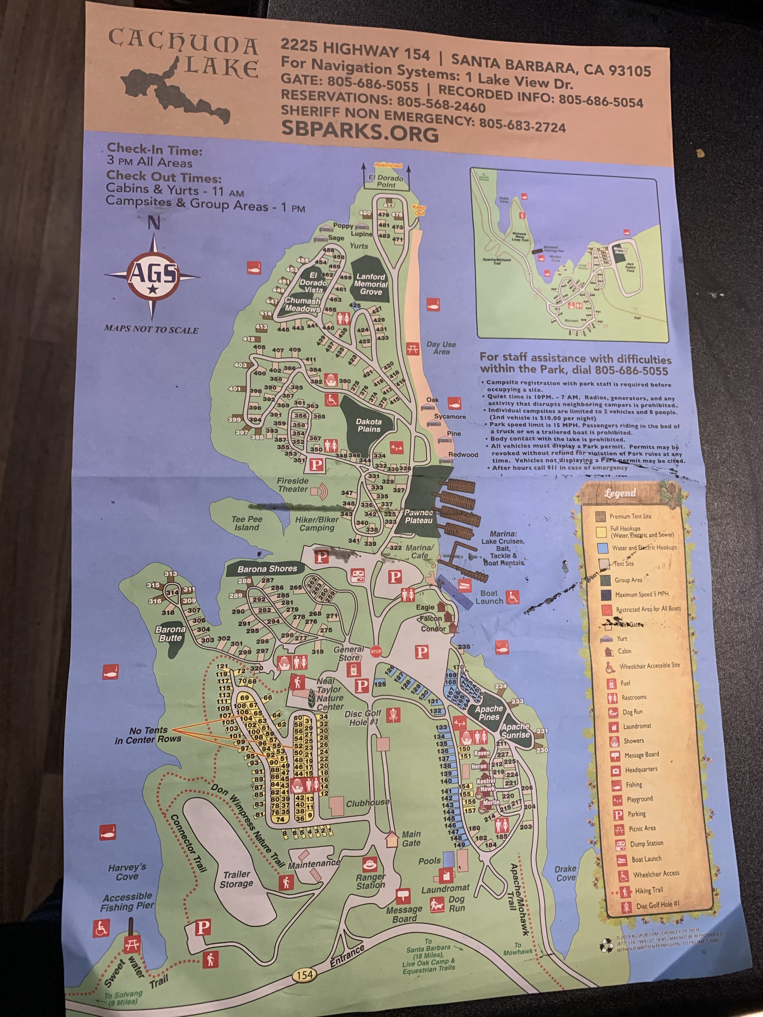Got back on PCH and while on the road, looked up on campgrounds. We found one called Paradise Campground, an hour away from where we were at. I was a little scared driving towards the campground because the road was so narrow and all the turns and uphill downhills, but we made it to our destinations and it was wack. The main reason we choose this place was to go fishing but the river was dry and it smelled funky. Its a dry campgrounds, no RV hook ups but I have a feeling that people would dump their gray water outside which is why it smelled bad. We didn’t stay. We looked at another spot and not far from there we found our next campground for the night called Lake Cachuma.
