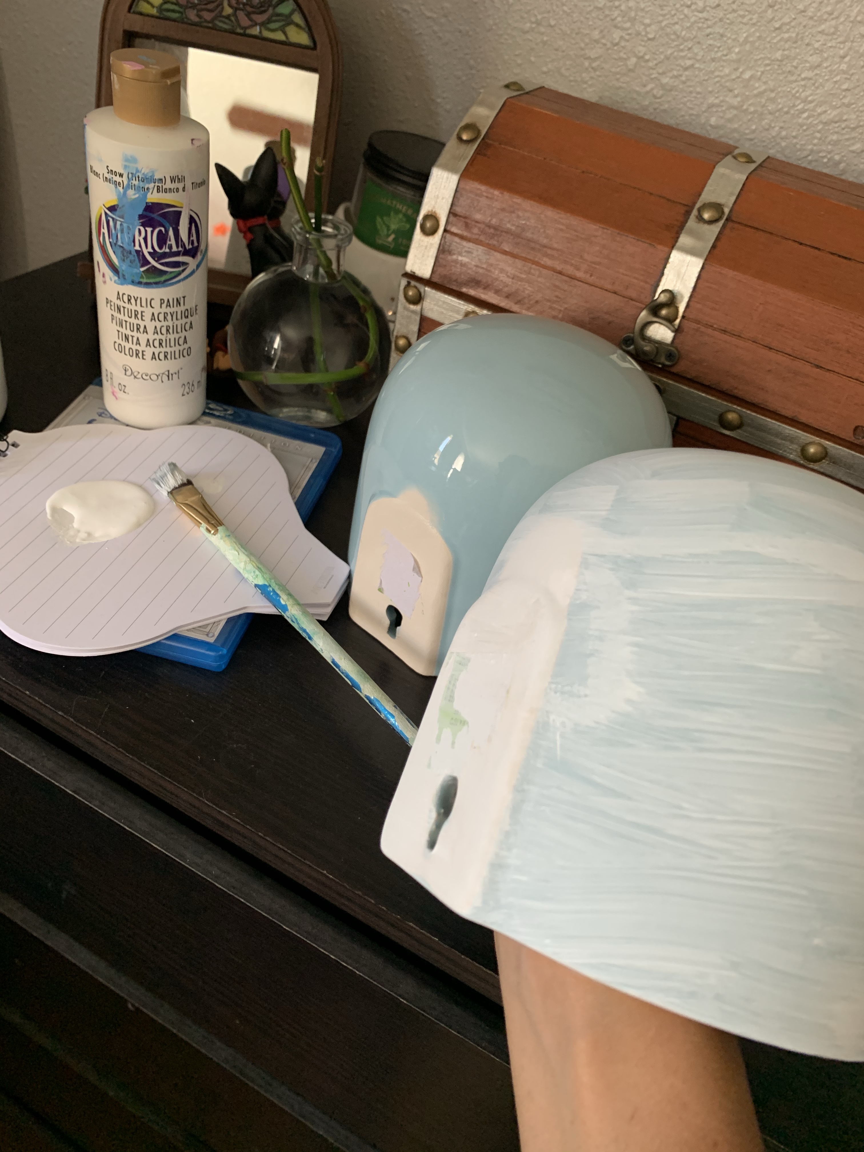 It took 6 to 7 coats of white acrylic paint to fully cover the light blue.
