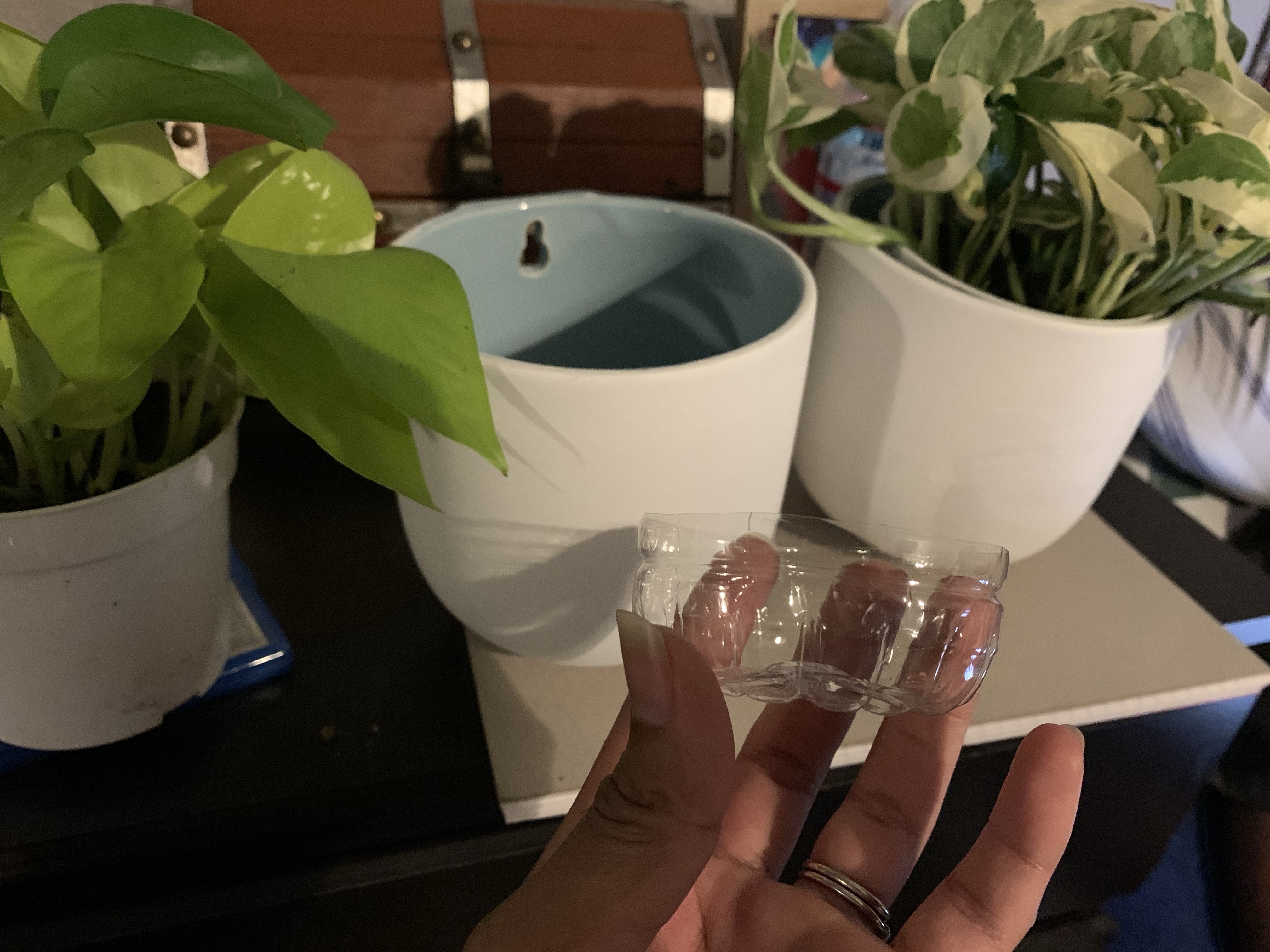 So my plants wouldn’t be too deep inside the pot, I cut the end of a plastic water bottle and put that piece inside the pot. My plant now sticks out nicely and it helps too with any issues of overwatering.