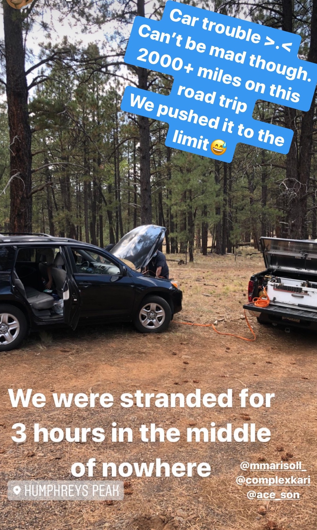 Day 5 we took off from Texas and started driving to the Grand Canyon. We left at 4:30am and we made it to Arizona around 1pm. We were an hour away from the Grand Canyon when our car started acting up. The steering wheel felt stiff, the dashboard lights started flickering, and the odometer was going crazy. The moment we pulled to the side of the road, the car was dead. We were an hour away from the Grand Canyon and 20 mins away to the closest city. Luckily we had AAA but we were in the middle of nowhere, we waited close to 3 hours for a driver to show up.