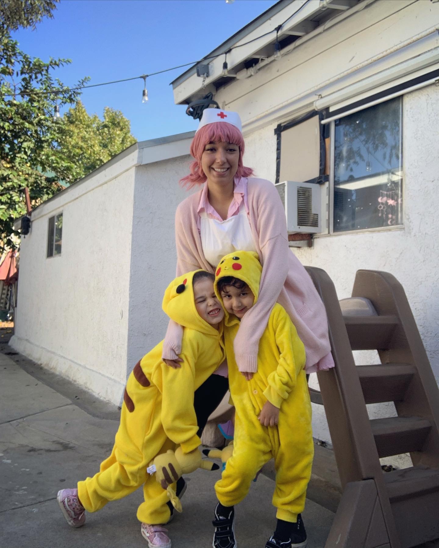 We started our morning going to Target for their Boo Avenue Drive Thru. The kids were dressed up in their Pikachu onesies. I wasn’t planning on dressing up but I changed my mind last minute and decided to get my Nurse Joy cosplay out of the closet.