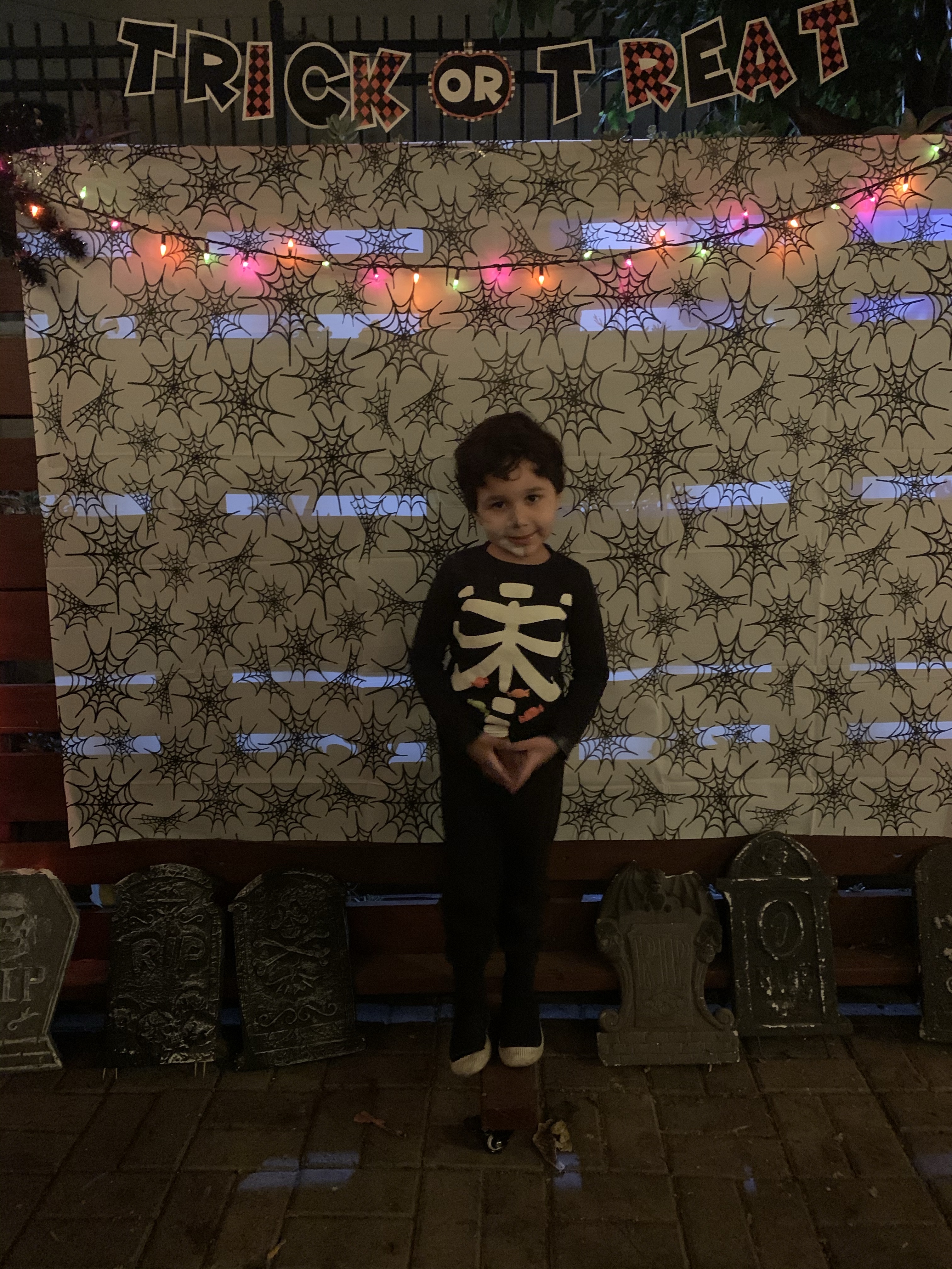 Trick or Treating was cancelled this year but I still wanted the kids to partake in the activity right here at home. I decorated the backyard and set up tables with candy; candy stations. I invited my closest friends to celebrate with us.