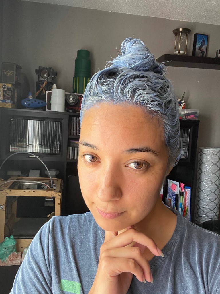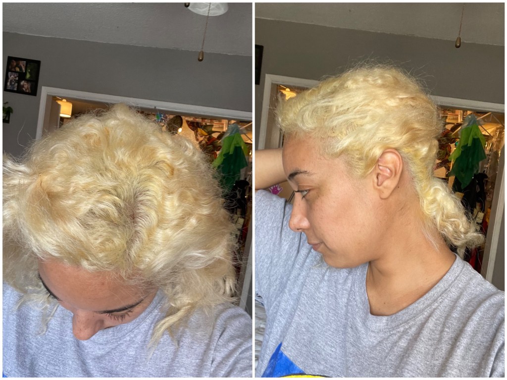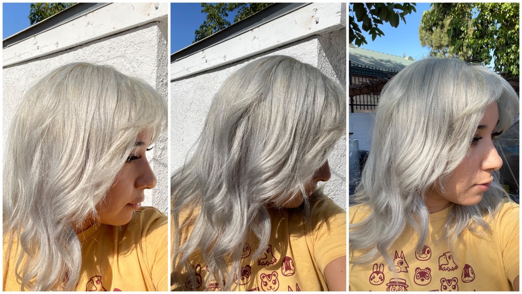 I took pictures inside and outside so you can see how the hair looks like in different lighting. I wasn’t excepting this hair product to tone my hair so beautifully. I love it. Another thing I love about this hair dye, my hair smells great because of the conditioner I used. Normally when I use a toner, like Wella, my hair has that chemical smell after washing it off. My hair smells great and it feels amazing.
