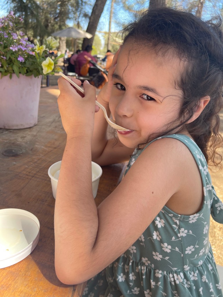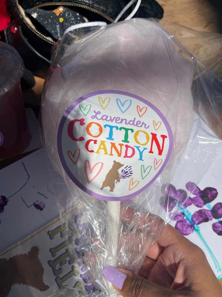 After painting and coloring, we bought food that also had lavender in it. I completely forgot to take pictures of our food since we were so hungry. By the time I remembered, we ate it all. For dessert, we got lavender cotton candy and lavender honey ice cream. So delicious.