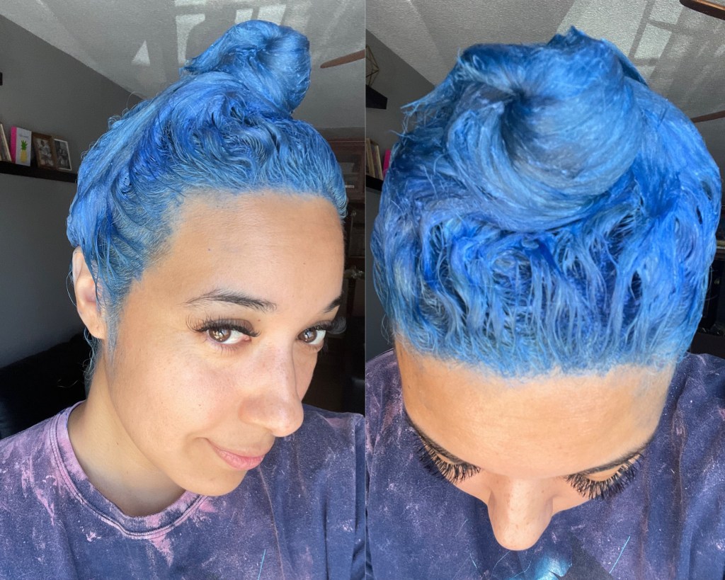 If I loved the sky blue shade, I loved this blue even better. They’re both pretty but I prefer the darker blue tone. Since it’s a darker color, it camouflages any sort of damage that’s visible with lighter hair which is great. This is the blue I wanted 3 years ago. I’m so happy with it.