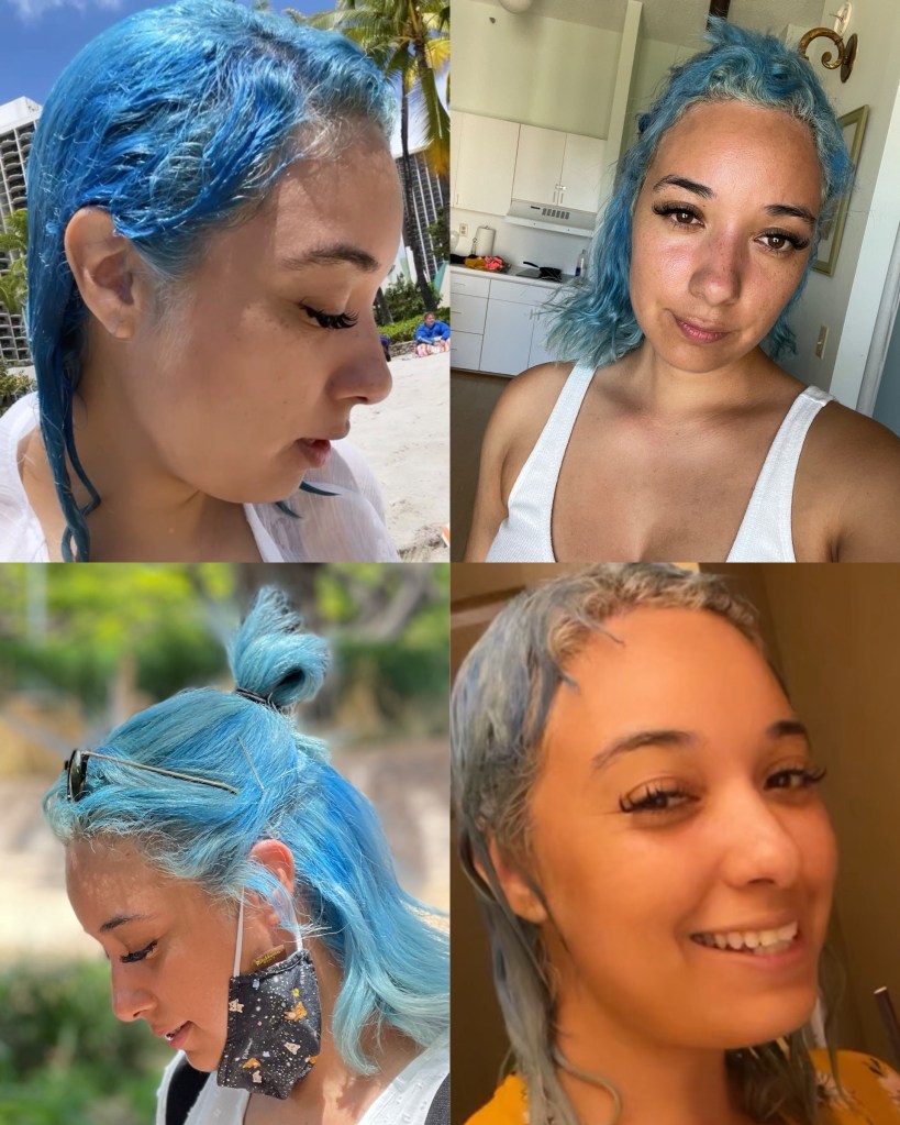 The first blue application I mixed with conditioner. Overall I was so happy with the results. It was a sky blue. The color didn’t last long though. I did my hair before leaving to our family trip. The color faded within a week. I was wetting my hair everyday.