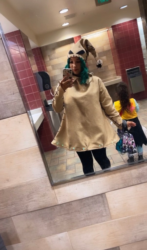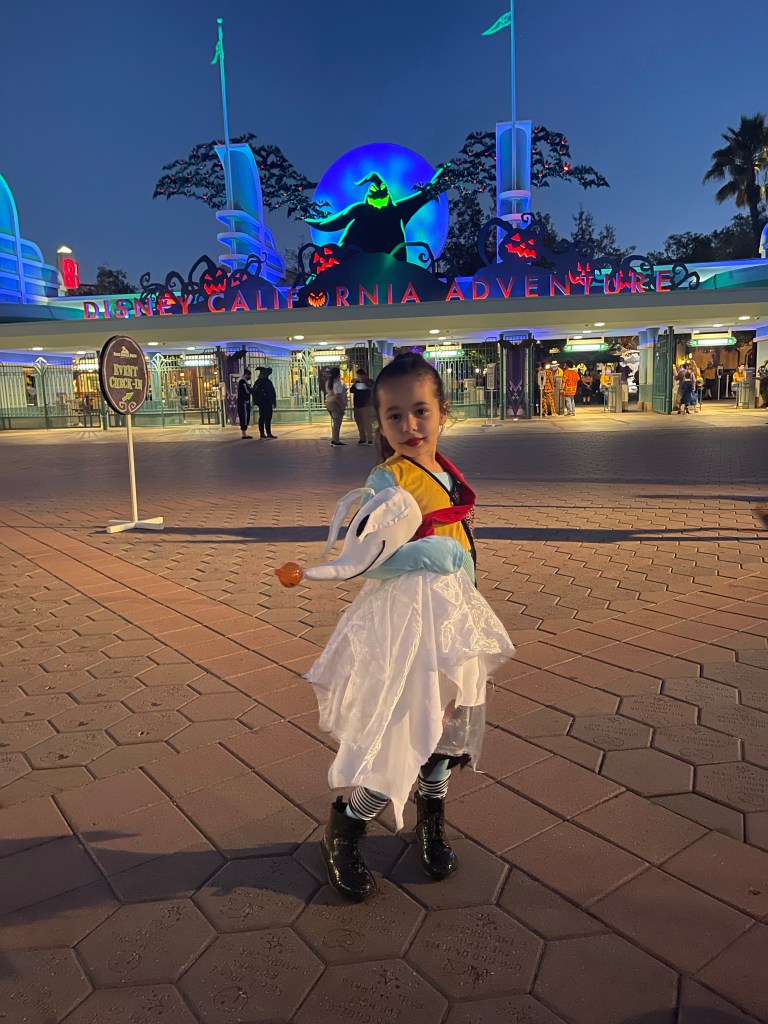 The event starts at 6pm but we can enter the park as early as 3pm. The original plan was to go early so we have more time to explore but the weather killed it. California weather was great, low 80’s, then the days leading up to the event, it got hot. At 3pm it was 96 degrees. I made the costumes to be comfy but not hot weather friendly. We ended up going at 6pm and it was still pretty warm, 88 degrees. The sun was setting but it still felt warm. I didn’t bother taking sweaters and I didn’t put on my costume until around 8pm.