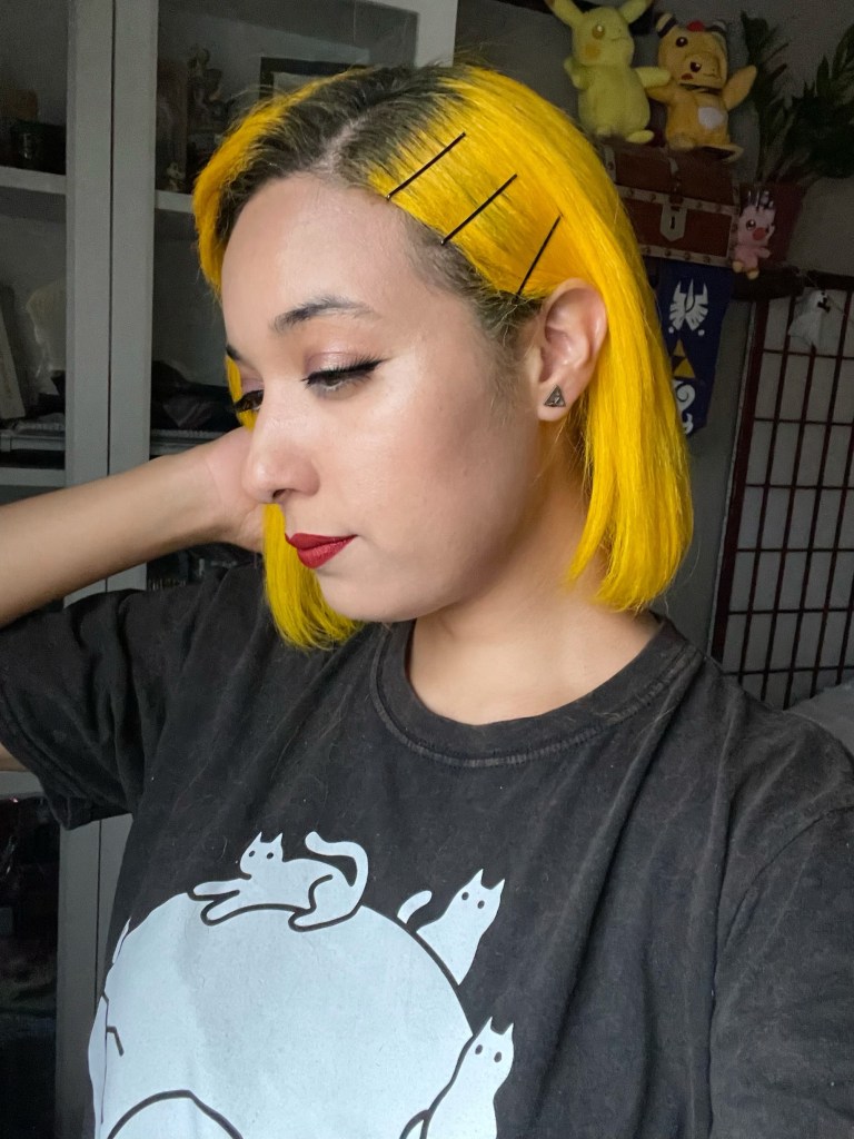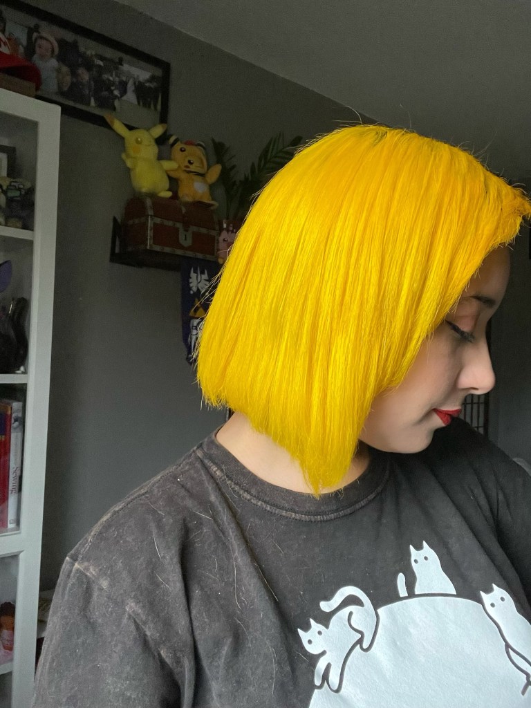 I feel like a walking sunshine and I love it. It’s definitely different but pretty. The blue was starting to make me feel sad but the yellow rejuvenated me. I did notice a spot on the back of my head that has a small tint of green since yellow and blue make green but I’m okay with it. No big deal.