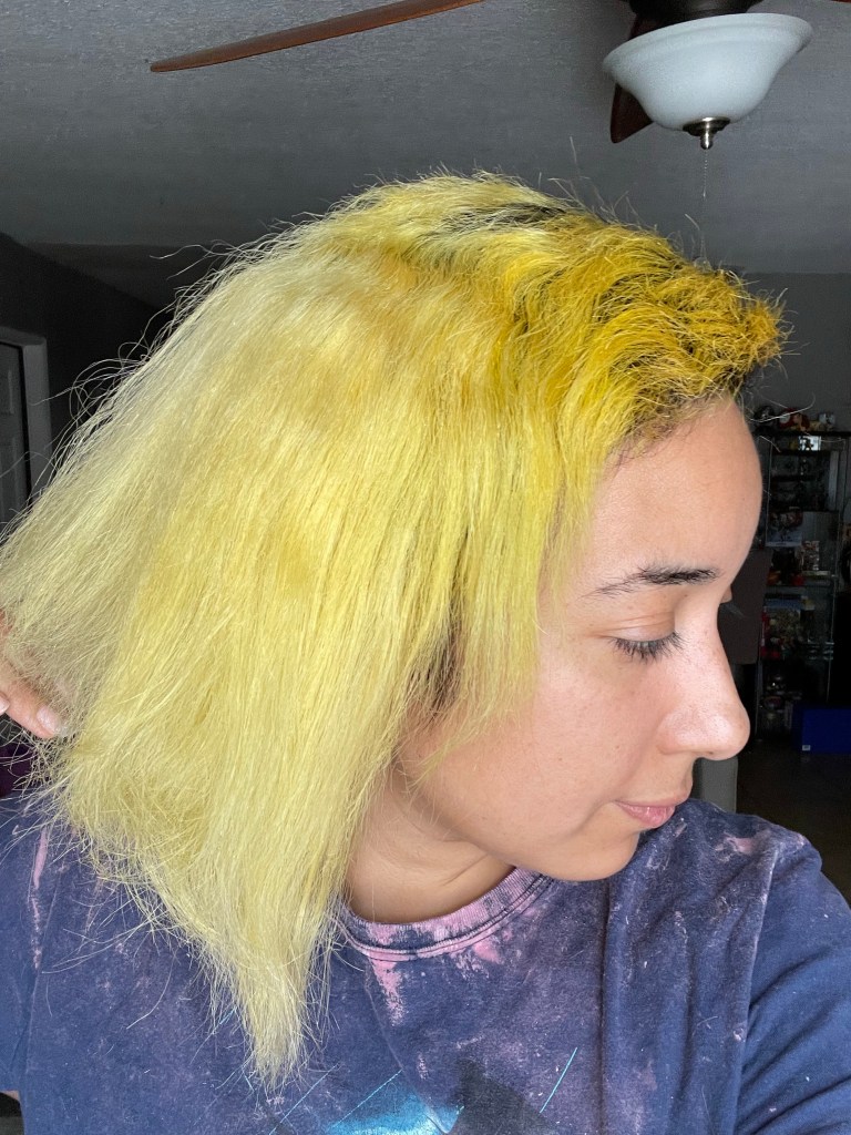 So another color I said I would never do. Well, I did and I love it. I honestly don’t think there’s a color I hate. I did green and yellow which I thought would be horrible hair colors. Turns out, they’re my favorite. Now orange is third.