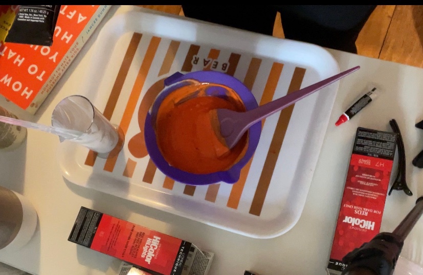 I did my research on what type of red I wanted to do. I wanted my red to be more on the orange side, copper. Semi permanent products weren’t going to work for my roots since semi colors only deposit color. No lifting at all. Semi colors also don’t do well in covering gray hairs. I went with a permanent hair color with developer. I think that this process is less damaging since the hair does lift about 3 levels without the use of bleach. I was close to bleaching my roots since I fell I love with a light copper but I stopped myself.