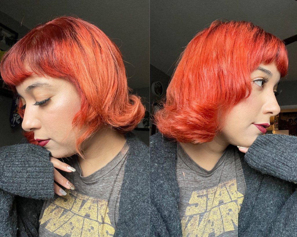 I don’t know why it took 3 days but in the end, I did like it. I didn’t like the dark red roots at first but now I do. My ends are lighter and that’s okay. I did trim a little of my ends because they felt so damaged. It’s definitely a look. Kinda choppy but I like it.