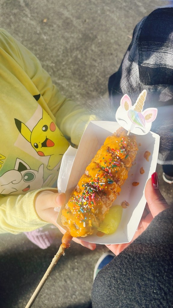 Everything that we tried was good. We weren’t really a fan of the rainbow mozzarella stick. I would have gotten something else but Zelda really wanted to try it. After taking 2 bites, she didn’t want it. I don’t think she liked the sauce that was sizzled on top. I ate it.