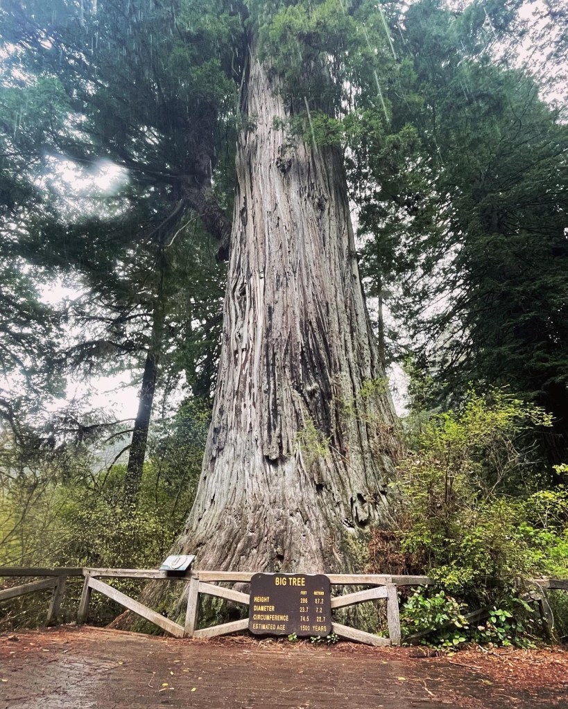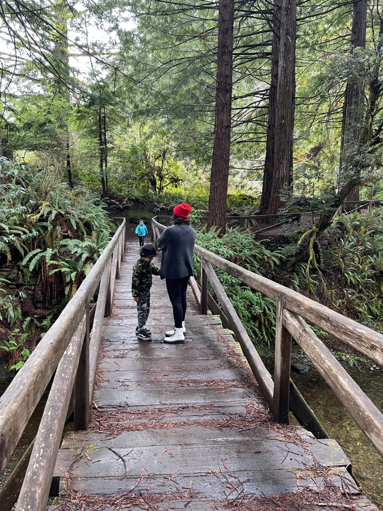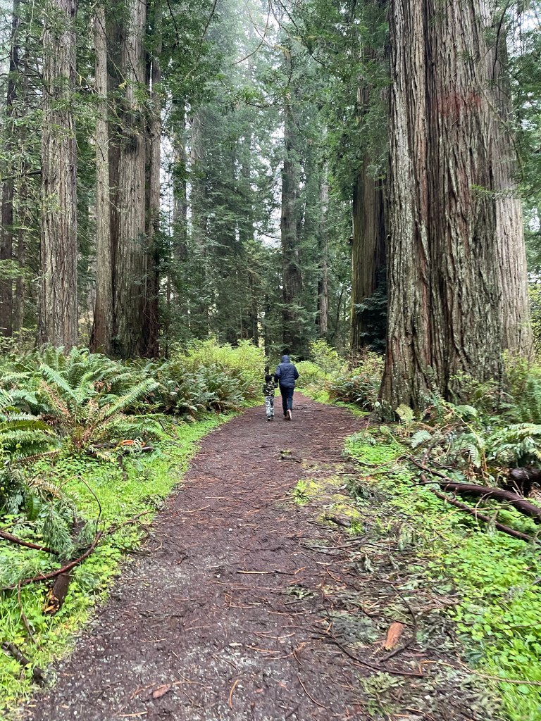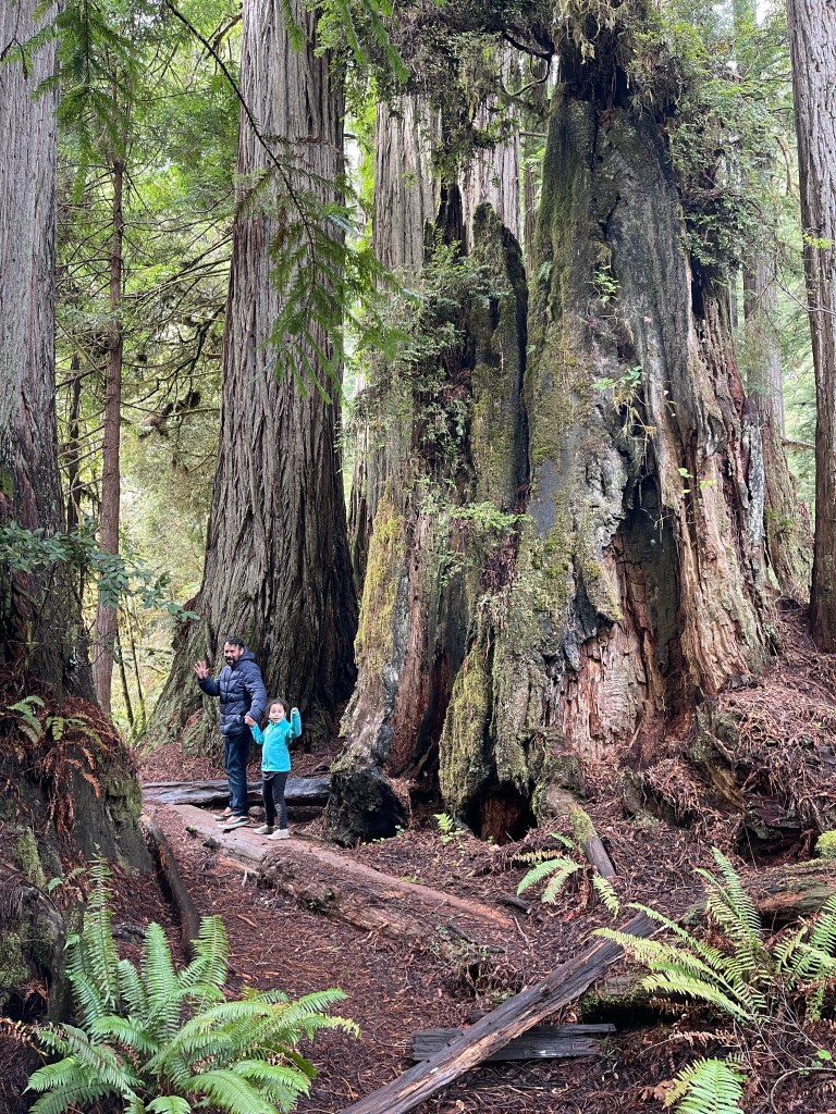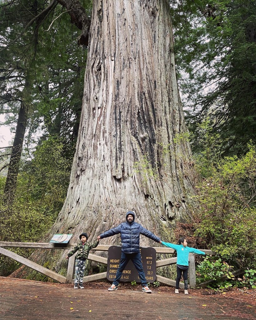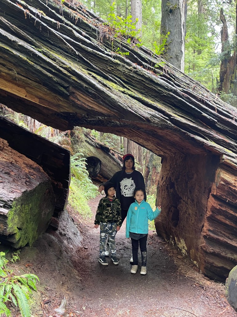 We took a lunch break and then we picked a short trail that the kids would find enjoyable to see the beautiful Redwood trees. The drizzle became full on rain but thanks to the trees, they provided shelter. The end of our trial led us to the Big Tree, estimated age, 1500 years old. It’s amazing how big these trees can get. It got me feeling so small being next to it and it feels surreal knowing how long the tree has been there. Nature is truly something.