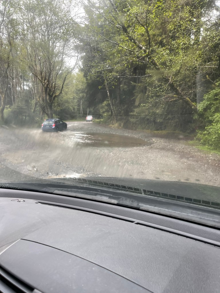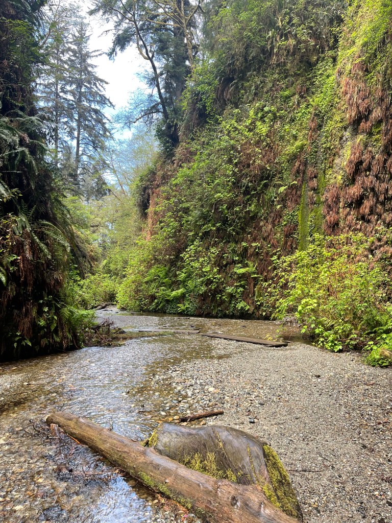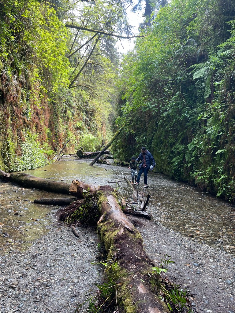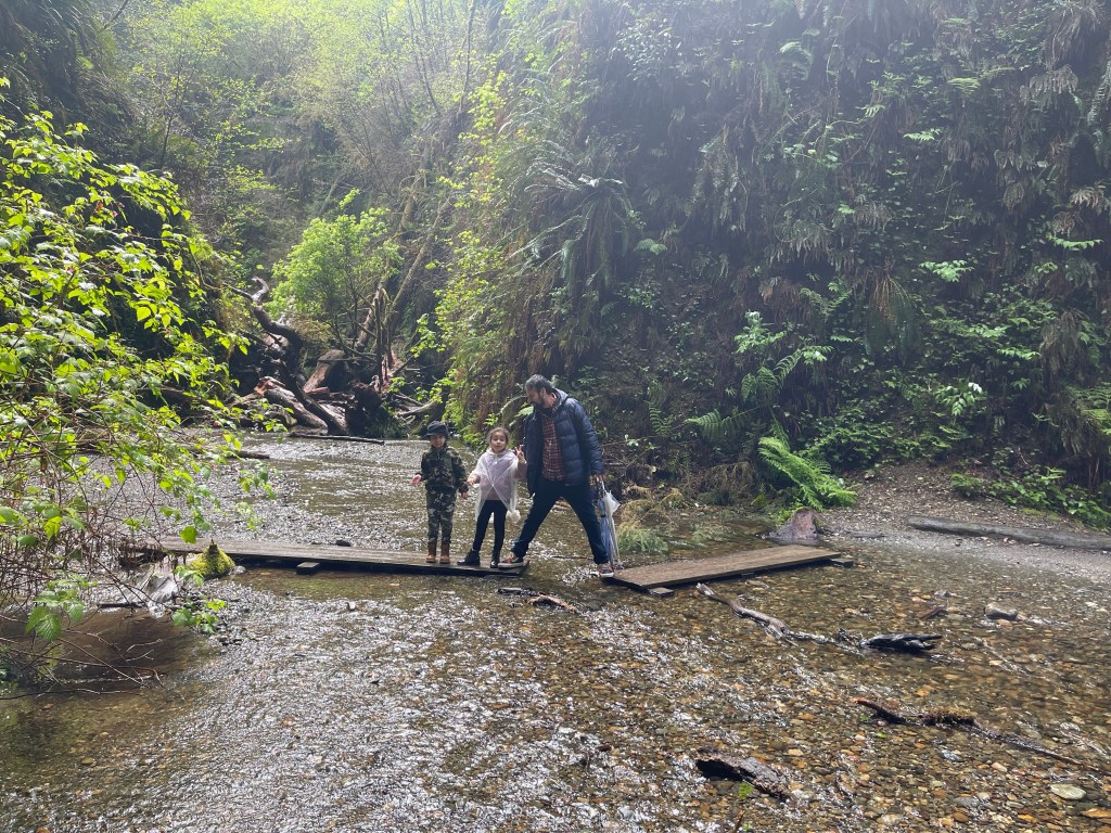 I only had 2 things I really wanted to check out which were the big beautiful Redwood trees and Fern Canyon. Anything else would be a bonus. It was a gloomy day with light drizzle so on our way to Fern Canyon we had to drive thru 2 fords. I knew our car can handle it but I was worried for the Tesla behind us. Despite how high the water level was, the driver took the risk and drove thru the ford.