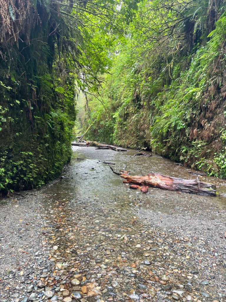 The walk to Fern Canyon was short and peaceful. I think in total we only saw 5 people while we explored and stayed a bit. Despite the light drizzle, the place is beautiful. I didn’t mind the gloomy weather at all. Our shoes did get wet since the water level was ankle deep but we didn’t care. I recalled that scenes from the movie Jurassic Park 2 was film there. I thought a dinosaur or something was going to pop out of no where. I would sometimes stop and just listen. This place was on my bucket list and it didn’t disappoint. I would like to come back.