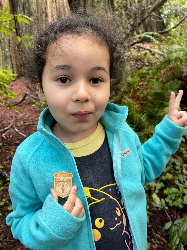 What an exciting day. This was the one place I was mainly looking forward to. Redwood National/State Park is about 60 miles long which can be overwhelming since we didn’t know where to start. We decided to check out a visitor center to get information and advice from a park ranger. Zelda and Link got a booklet to complete to get a junior ranger badge.