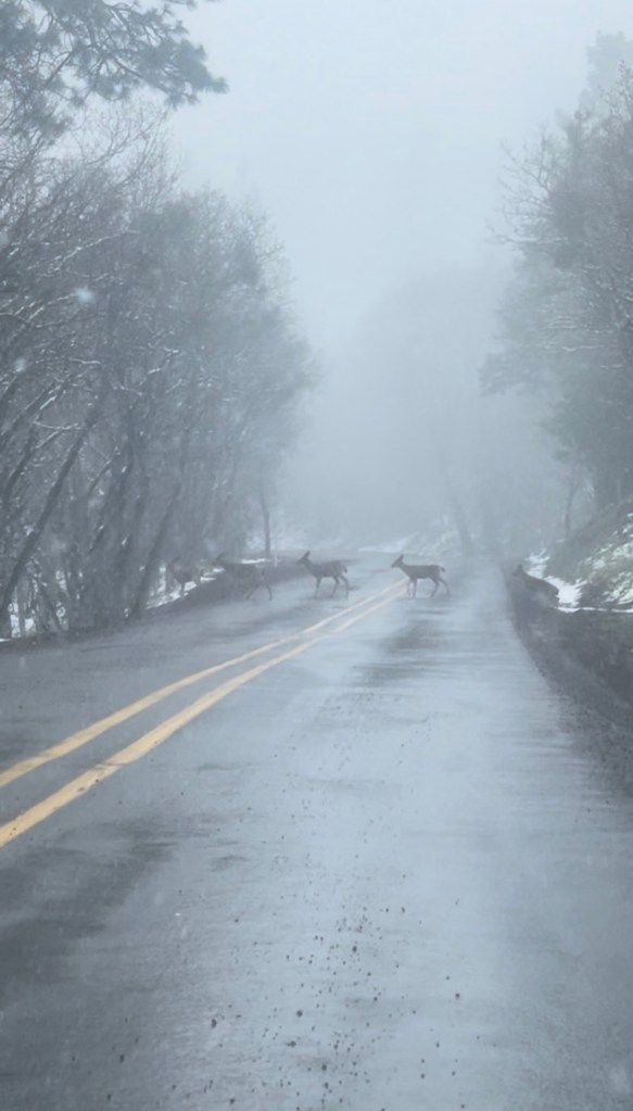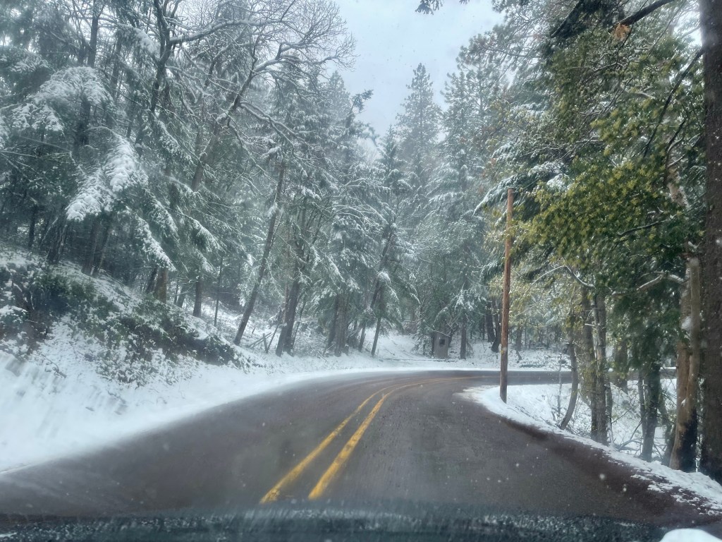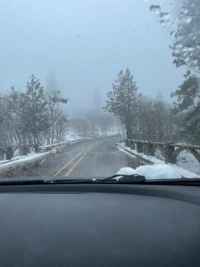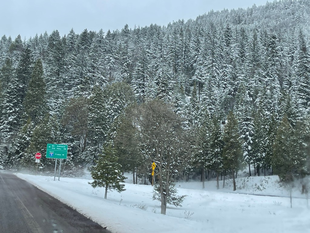 We filled up an empty water bottle so our friends can try it themselves. We left Ashland and started the drive back home taking the 5 freeway South. Before reaching the freeway though, we took a small detour to check something else. It started to snow which I kinda got nervous again but I was the only car in the road so I took my time driving. I pulled up on the side of the road so we can play with the snow. It was a winter wonderland. I kinda got spooked when I saw a dog run up to us but it was friendly. The kids played a bit with the dog until its’ owner called it and he run on back. It started to get chilly so we hopped on the car and continued on the road. I can’t recall why we took this small detour but it was fun. The kids enjoyed it.