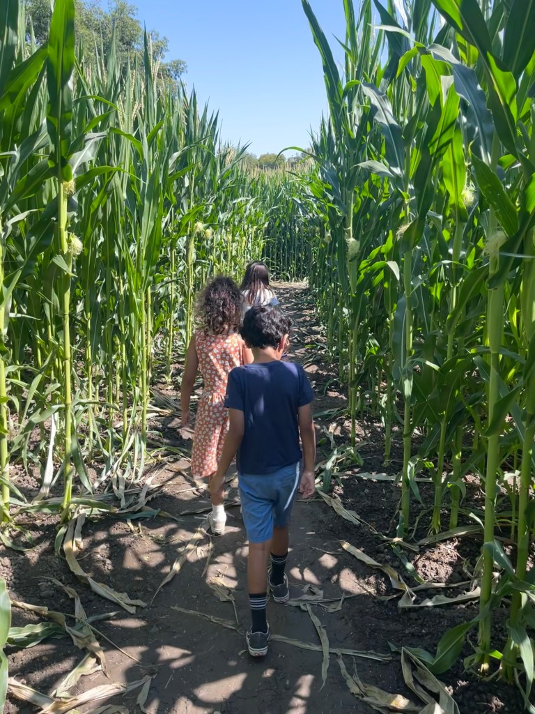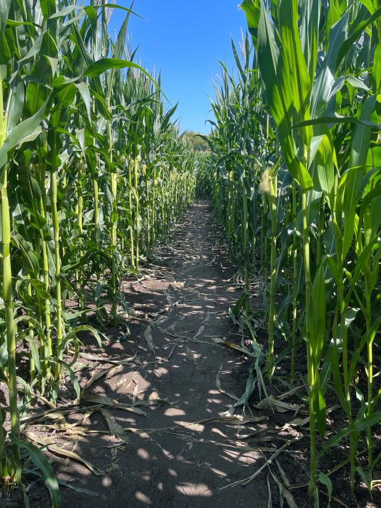 I was expecting the entrance to be $3 per person because that’s what I saw on their Instagram page but it was free. They have plenty of animals such as chickens, pigs, goats, a turkey, and donkeys. They have pony rides but that’s only available on the weekends. The same with the train ride. I was wondering where the corn maze was and it’s actually across the street. I wanted to try it out. Its $10 per person. We bought our tickets and off we went to the corn maze.