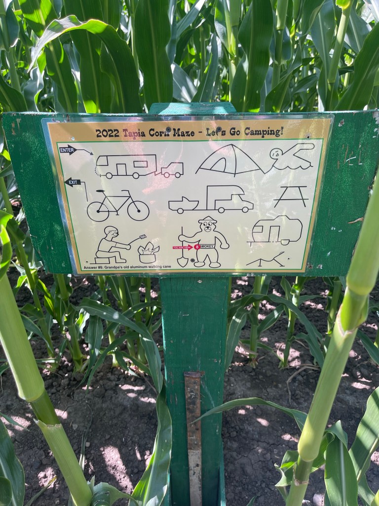 I have been on corn mazes before but they haven’t been the best. This one definitely became a favorite. It’s very bushy and green and you can get lost in there. There were other people in the maze too and we only encountered 2 people the whole time we were in there. We were given a card with a total of 12 questions. We had to find the answers in the maze.