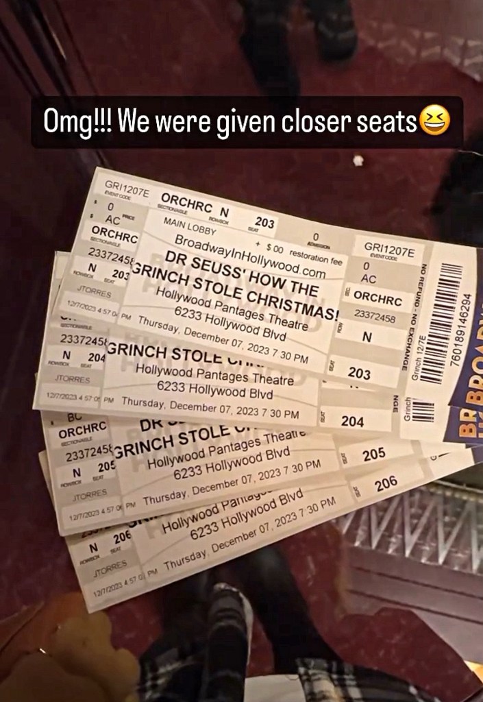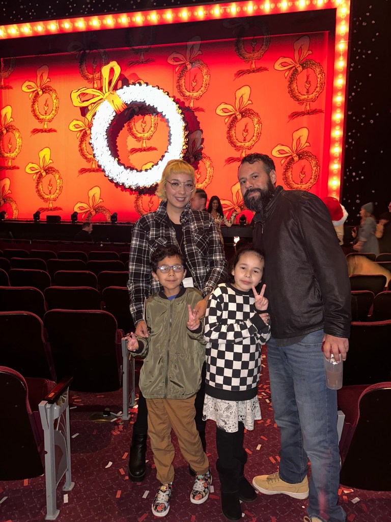 We were all so excited for the show. We got booster seats so the kids can see better. We were close to the stage that fake snow fell on us which the kids enjoyed and the ending made us jump when the confetti blasted from the stage. After the play, there was a marriage proposal which was cute. She said yes.
