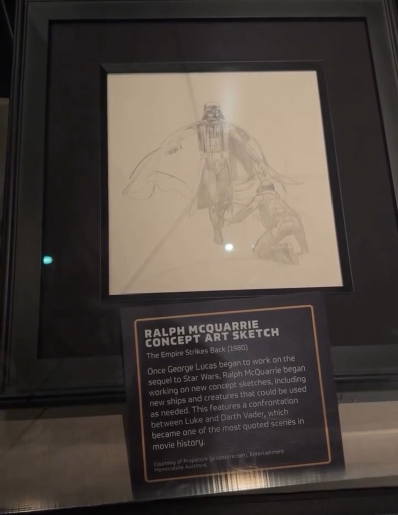 I think it brought more awareness to the films since news outlets would mention it. It’s an interesting and funny connection. I was expecting to see memorabilia of the films which there was but it felt more like the creation or the making of Star Wars. It focuses on the original films, episodes 6, 7, and 8. There were rough drafts, scripts, and early drawings. It’s pretty cool to learn new facts.