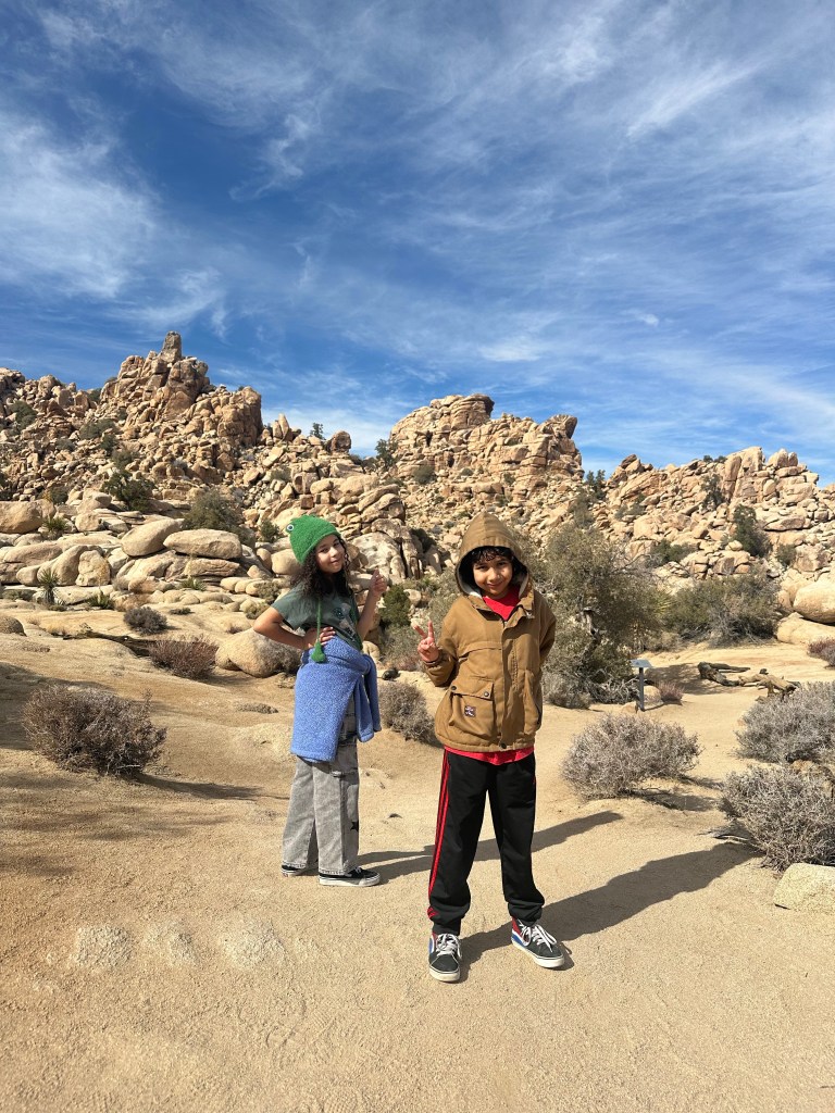 The next day we went to Joshua Tree National Park. We checked out the Visitor Center first and asked a park ranger to recommend us kid-friendly hikes. She warned us that the park was busy since it was Sunday. I’m an LA girl so I was expecting some sort of traffic jam inside the park with tons of tourist. So wrong I was. Our day was just perfect. Hardly any people, easy parking, and perfect weather; not too hot and not too cold. The kiddos enjoyed the scenery and we had fun picking out rocks that looked out of the ordinary.