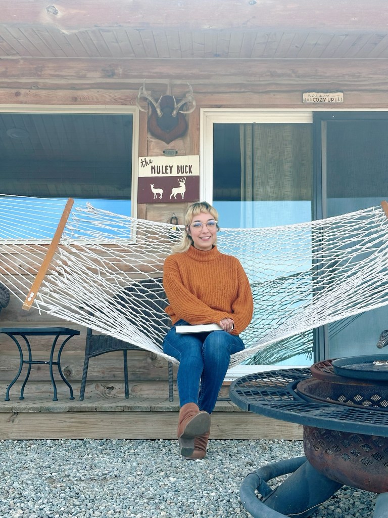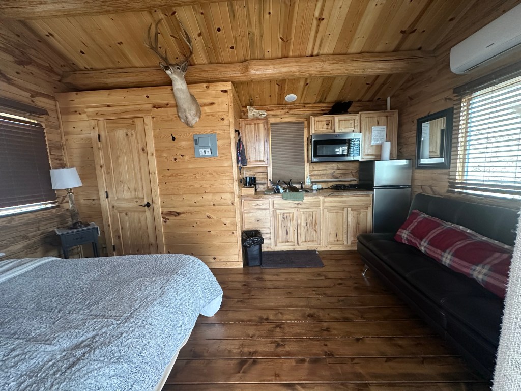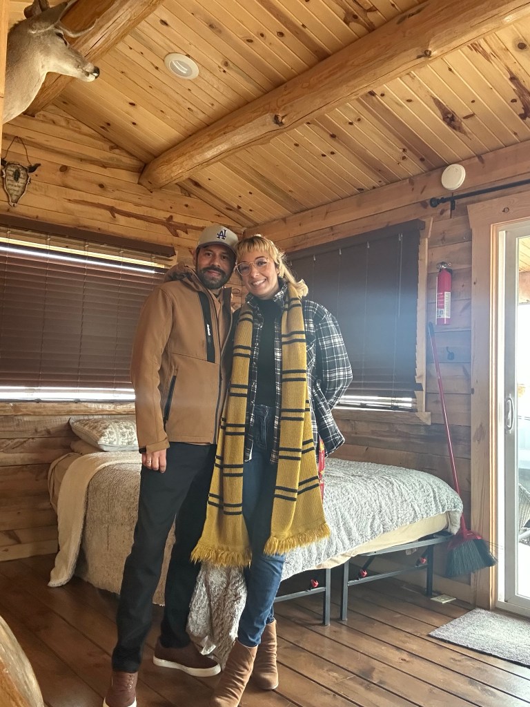 Our cabin was cute, small, and cozy. I loved the wood smell. We started up the grill, poured ourselves drinks, and played music. It was a cold night but alcohol tends to warm you up so it was nice being outside, even though it was 43 degrees. Eventually we went inside and watched a movie.