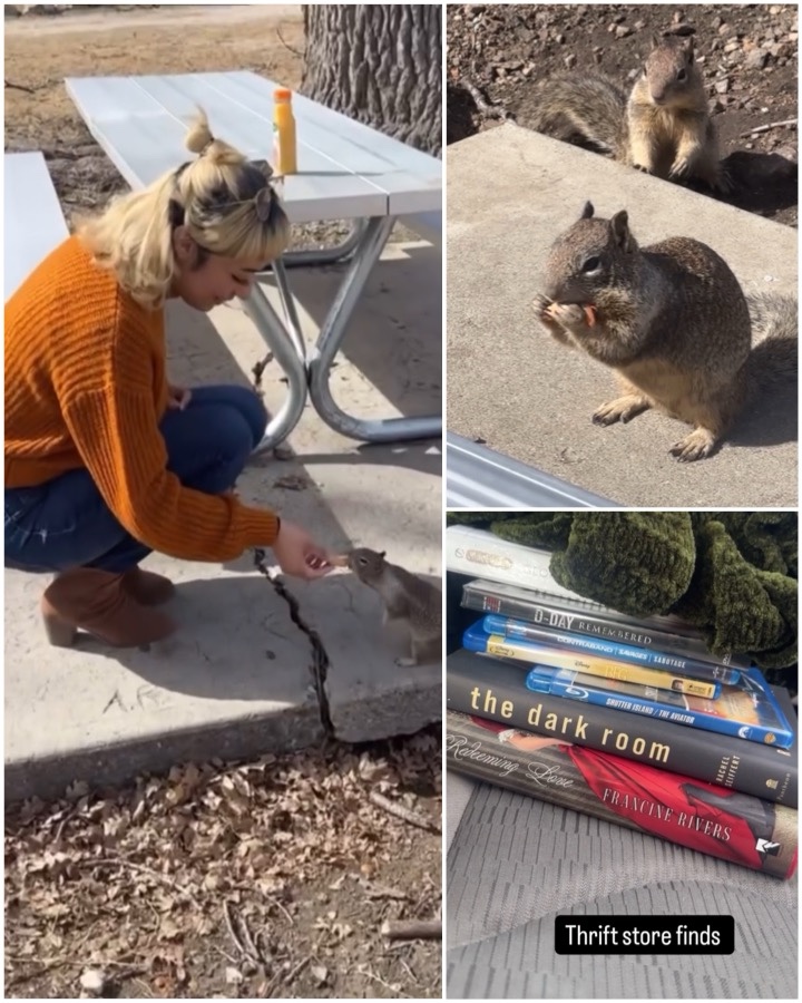 We decided to check out the neighboring town. We did a little bit of Pokémon hunting around the park and fed peanuts to cute squirrels. I wanted to check out the local thrift stores which I ended up getting books.