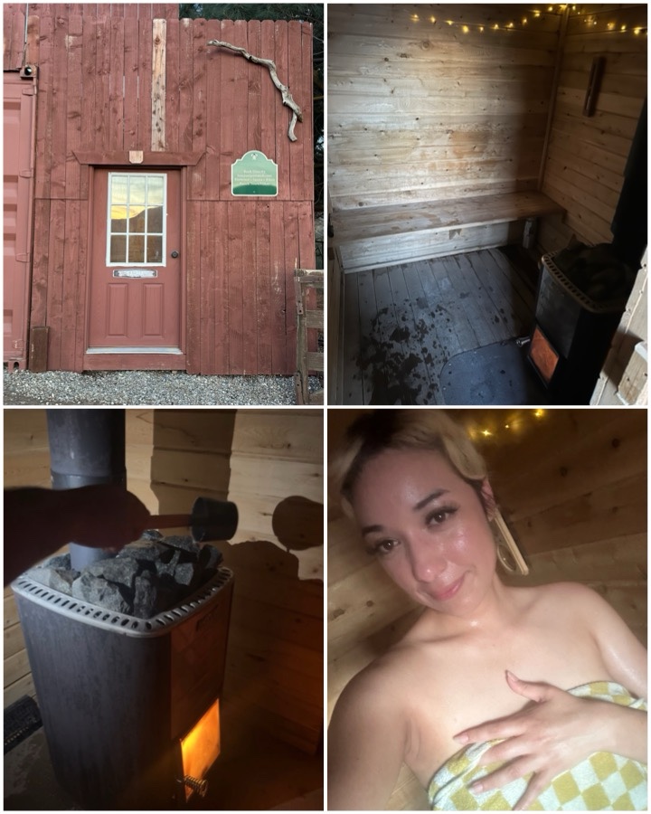 We went back to the cabin to relax for a bit and got a bucket of carrots delivered to our cabin to feed the animals. The ranch has a sauna which we booked for an hour but 20 minutes was enough. It got hot real quick in there. It felt nice to detox.