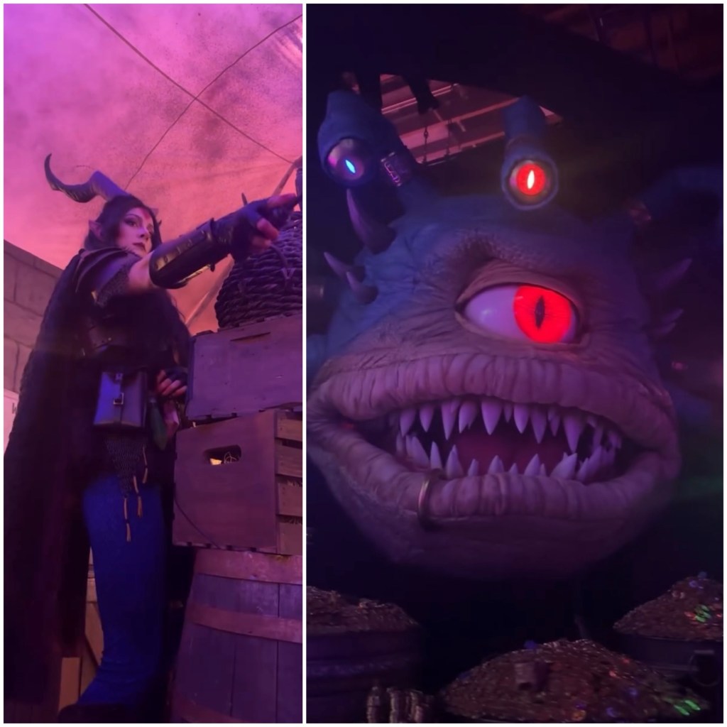 Once we got in the park, we headed straight to Super Nintendo World, got a blue Yoshi headband and began our search for the Yoshi eggs. Once we found all of them, we headed to the line to meet blue Yoshi but once we saw how long the wait was, we decided it wasn’t a big deal meeting him so we left Nintendo World and went to check out the Dungeons & Dragons experience.